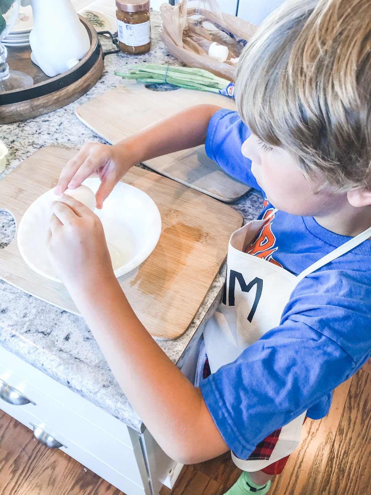 ...and if it makes you feel any better, he actually had more trouble cracking these eggs than using a knife ;) He got it down, though!